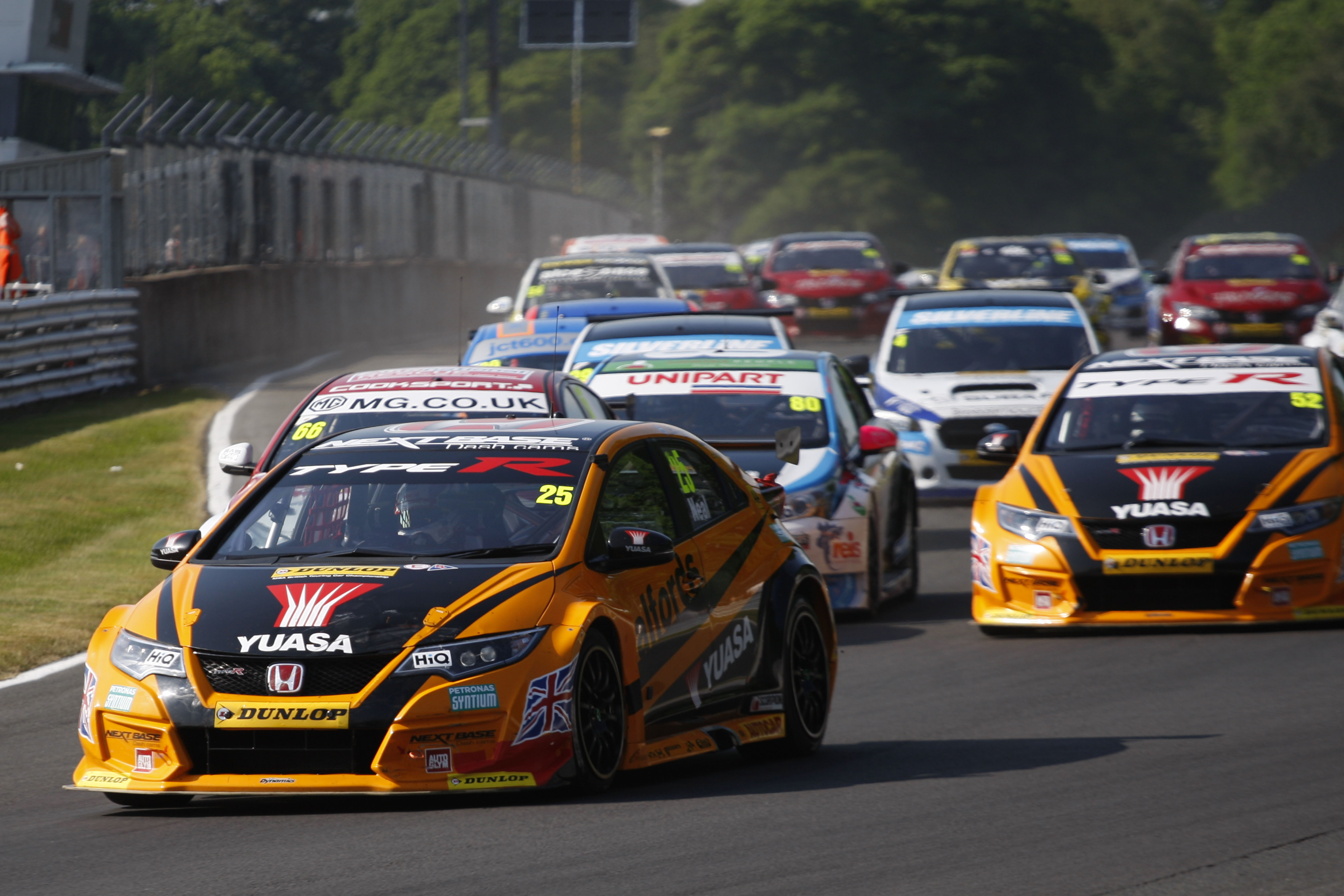 Neal was the lucky man to be promoted to pole position for the final race of the day, meaning he started on the front row next to Cook with Ingram and Shedden on the row behind. Shedden was able to take Ingram off the line and by the end of the lap he was behind teammate Neal after a tap on Cook sent him off course at high-speed Druids, also allowing Ingram through. The Honda duo made sharp exits as they sped off into the distance leaving the rest to fight it out.